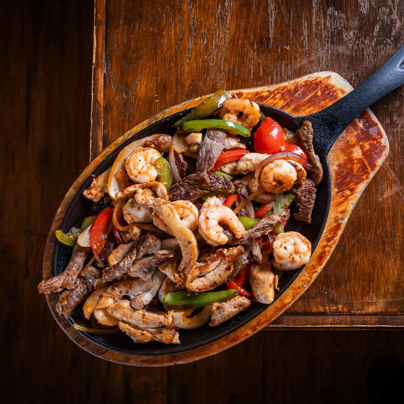 Mixed Fajitas with steak, chicken, shrimp with side of rice,beans and tortillas